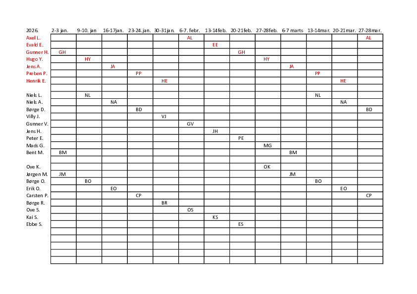 Vagtplan 2026 1.halvår